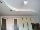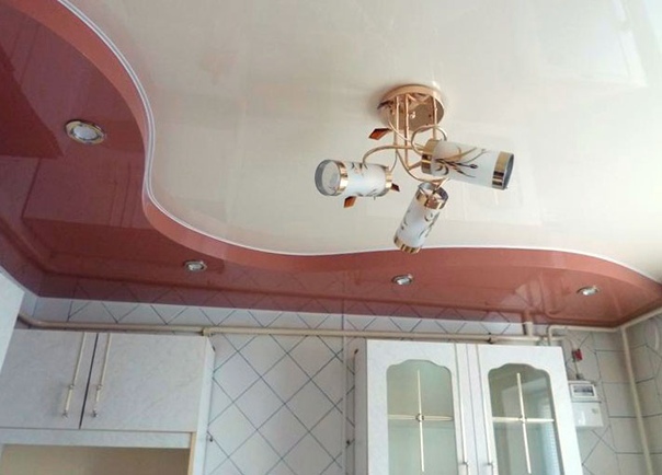 Для того, чтобы двухуровневый потолок не смотрелся на кухне, как инородное тело, необходимо, чтобы он повторял все формы кухонного гарнитура. Если мебель имеет строгие правильные линии с прямыми углами, то и гипсокартонная конструкция должна иметь прямоугольную форму. Если же гарнитур имеет плавные обтекаемые формы, то потолок должен повторять те же изгибы.