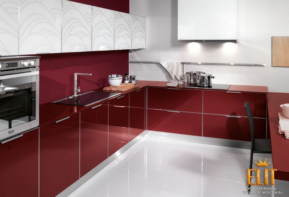 К тому же бело-бордовая кухня предоставляет свободу выбора, так как позволяет воплотить разные стилевые направления.
