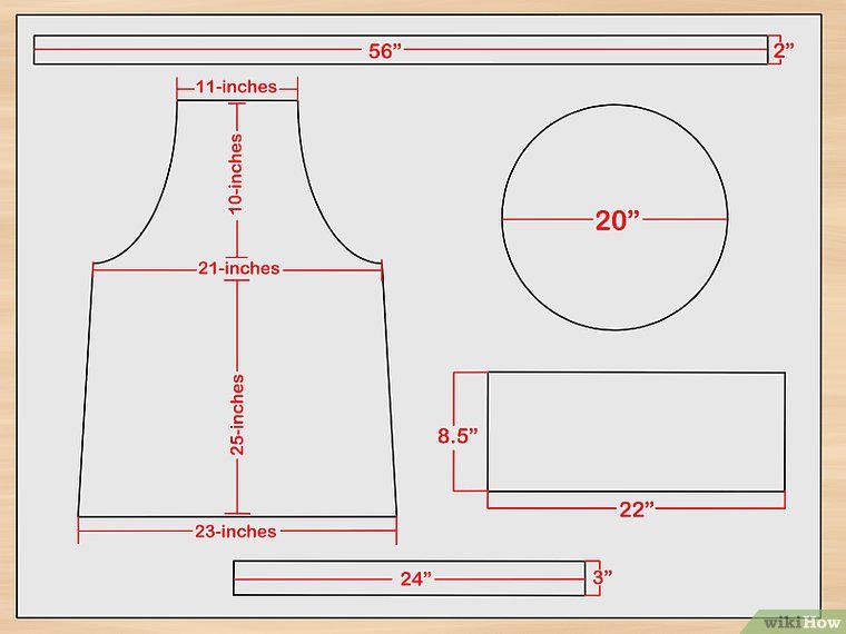 Перед тем как сшить фартук для кухни необходимо сделать выкройку будущего фартука. Она создается на основании снятых замеров: полуобхвата бедер, длины и ширины нагрудника, размеров передника, длины завязок на шее и поясе.