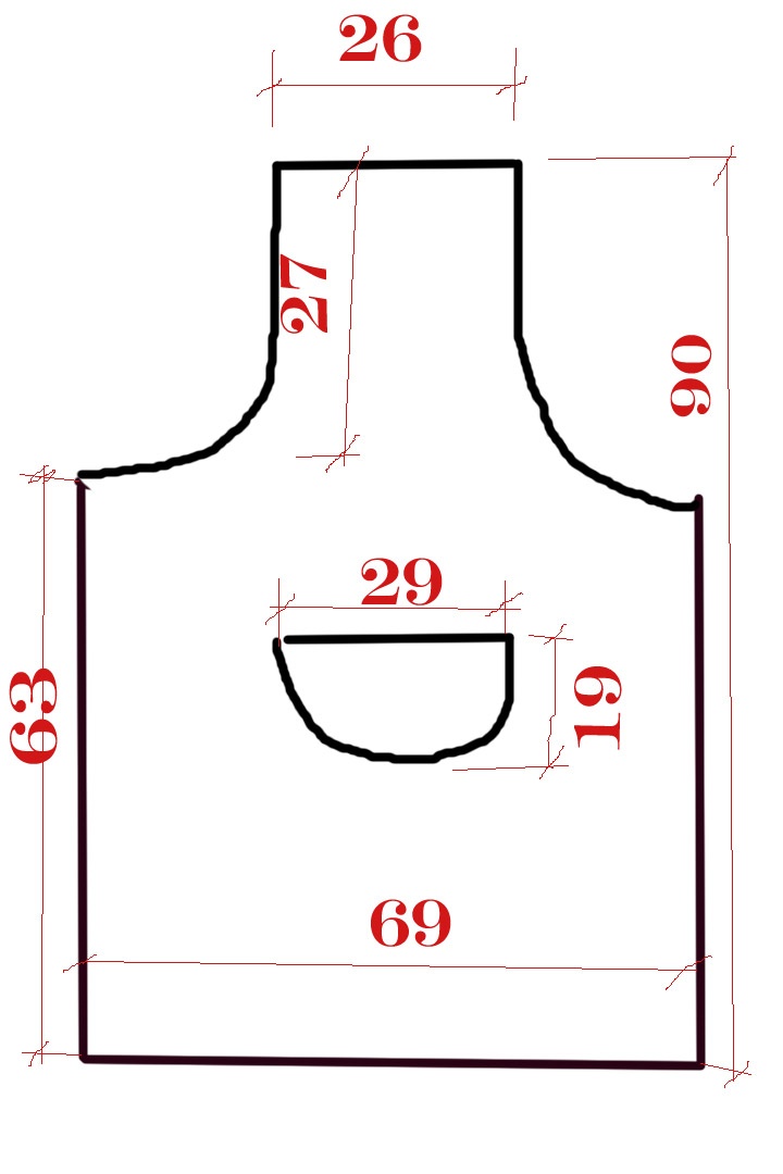 - Подготовим для начала выкройку и вырежем по ней деталь фартука.