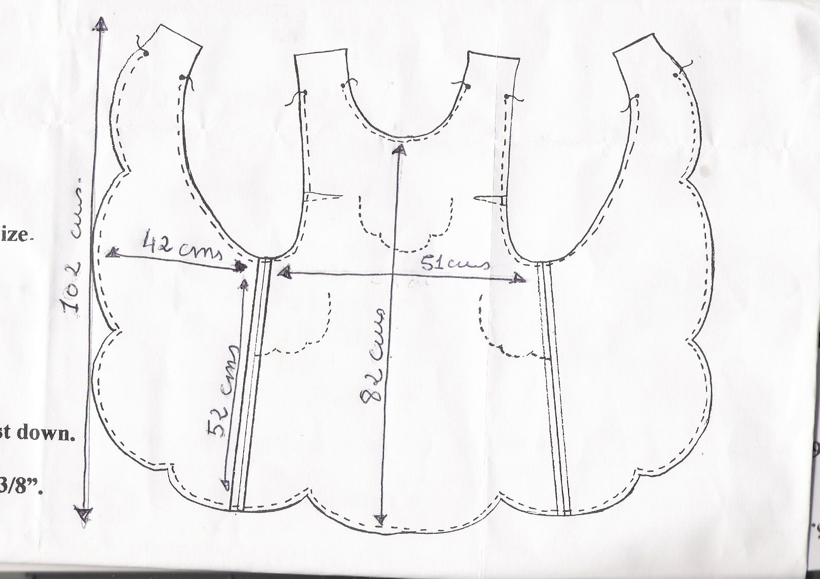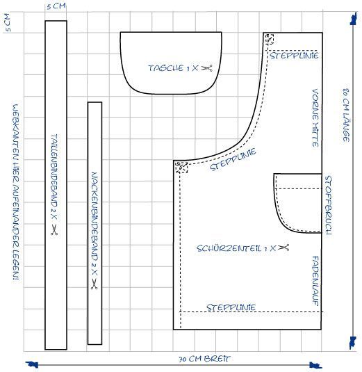 Выкройка должна быть напечатана в масштабе 100%. Вам нужно будет склеить 2 детали фартука вместе по пунктирным линиям .