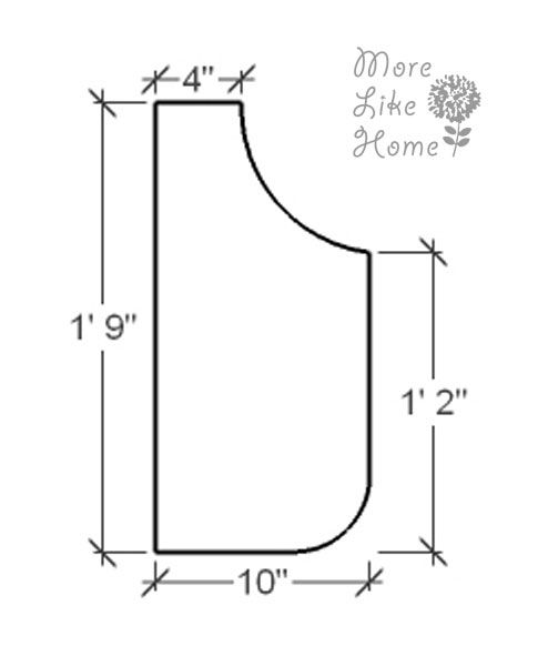 Это помогло найти середину моего отрезка длиной 85 дюймов, а затем начать прикреплять диагональную ленту к верхней части фартука на расстоянии 9,5 дюймов от этой средней точки.
