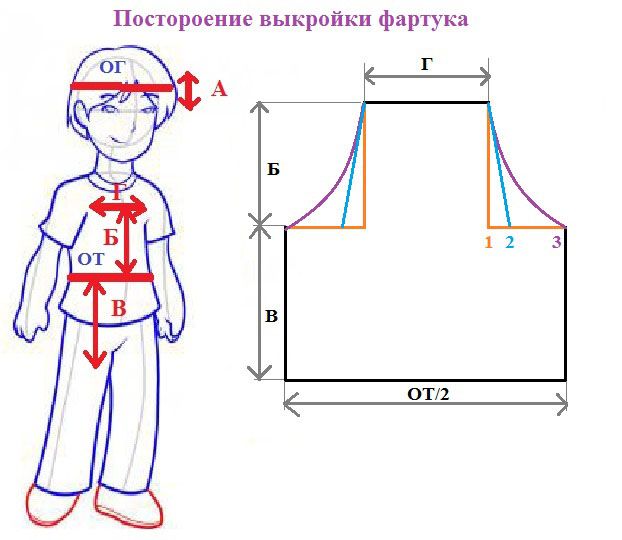 Чтобы нарисовать выкройку нашего детского передника, нам нужно выяснить три вещи…