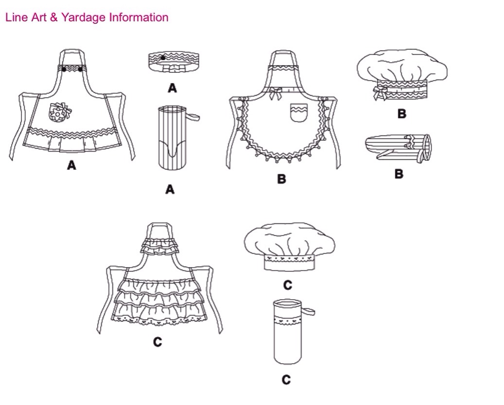 - 2. 1/2 ярда 2 одинаковых тканей (вам понадобится дополнительная ткань, если вы планируете удлинить фартук)