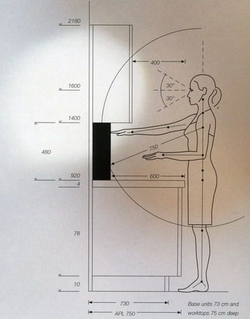 Особую внимательность стоит проявить в работе над кухней с автономной вытяжкой. Исходя из высоты печки, которая составляет 85 см, высчитывается нижняя граница фартука, а расстояние между варочной поверхностью и вытяжкой не должно быть меньше 75 см (или 65 см для электроплит), что дает возможность рассчитать верхнюю границу фартука: 85+65=150 или 85+75=160. Это минимальные показатели, ниже которых нельзя располагать вытяжку, а значит, и фартук.