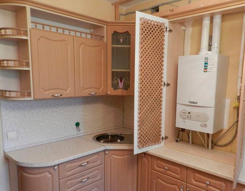 Газовая колонка в хрущевке на кухне: как скрыть оборудование, где расположить, дизайн с кухонной мебелью и холодильником, меры безопасности