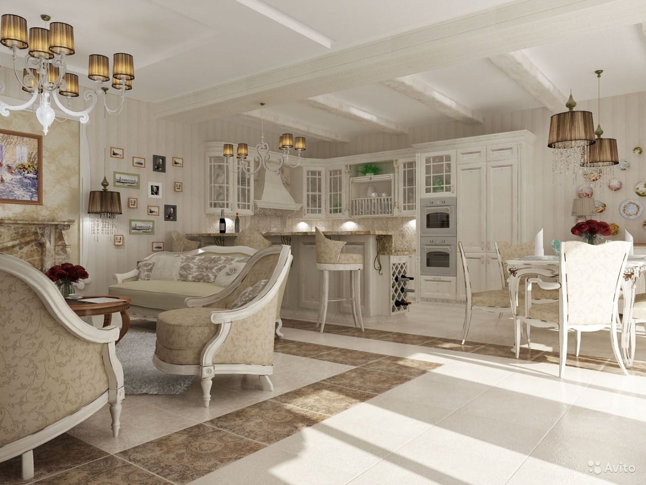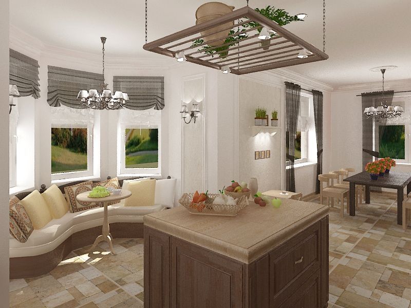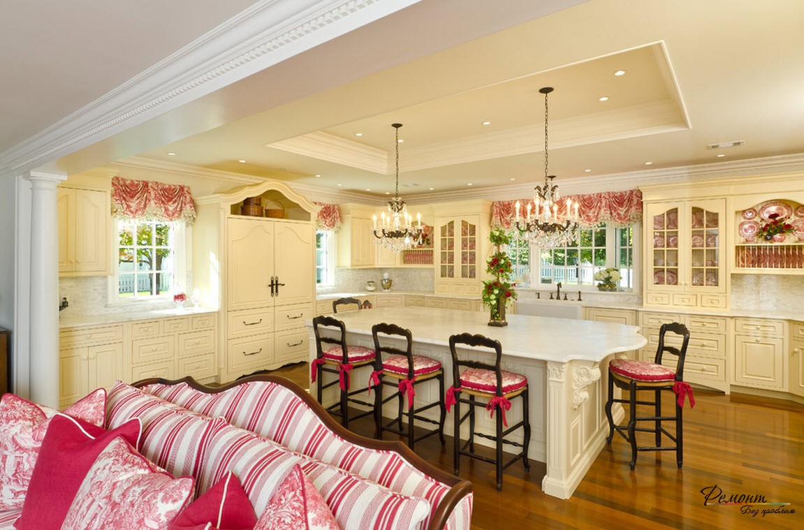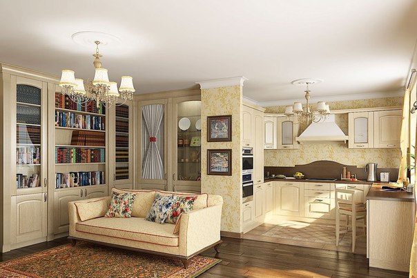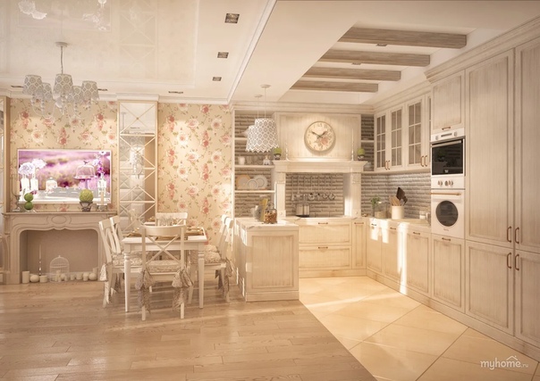 Гостиная и кухня в стиле прованс: дизайн современного интерьера совмещенного помещения