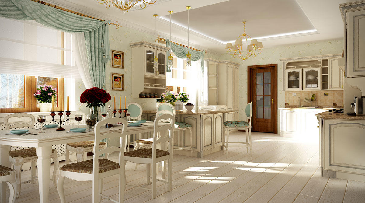 Отделка и планировка кухни во французском стиле кантри