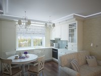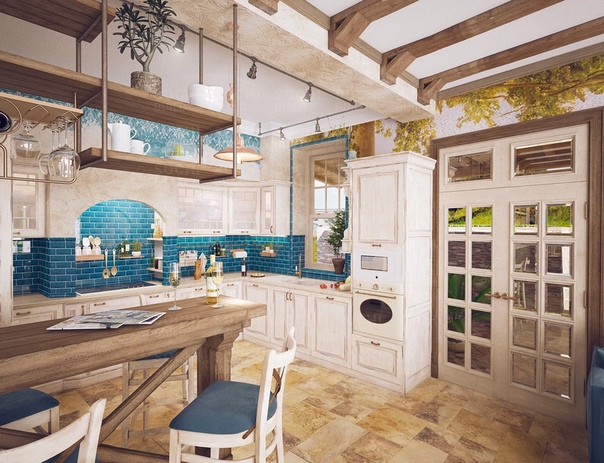 Типичная кухня-гостиная, выполненная в стиле прованс