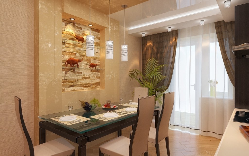обои, современные идеи оформления 2021 над обеденным столом