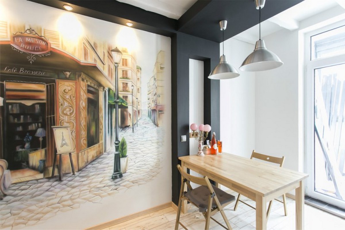 И сейчас довольно часто хозяева выбирают для своих кухонь именно этот вид отделки. Фотообои способны придать очень романтичный вид кухонной комнате. Но выбирать их стоит особенно тщательно, обращая внимание на общий дизайн помещения, расцветку, характер домочадцев и другие нюансы. Картинка может смотреться очень неуместно в том или ином оттенке, или, наоборот, стать ярким дополнением, гармонично вписывающимся в общую картину и атмосферу помещения.