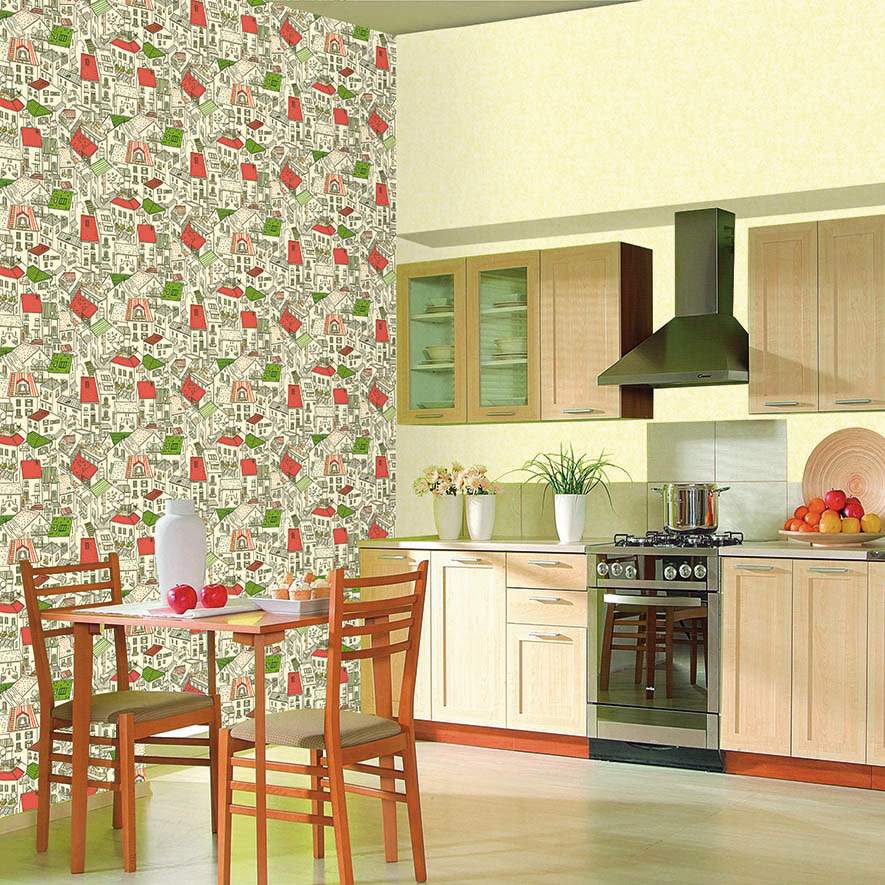 Кухня отличается от других комнат сложными условиями эксплуатации: влажность, высокие температуры, пар, брызги жира. Поэтому обои подбираются с учетом, чтобы их можно было мыть, протирать, красить и долго не менять.