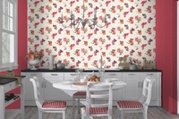 Колоритные обои на кухни, фото которых вы можете видеть чуть ниже, отлично подойдут для отделки в стиле прованс и кантри. Для этого выбираются настенные покрытия светлого тона с романтическим, цветочным, изысканным принтом. Производители предлагают изделия с изящным рисунком, натуральными нотками (листочками, ветками, бабочками).