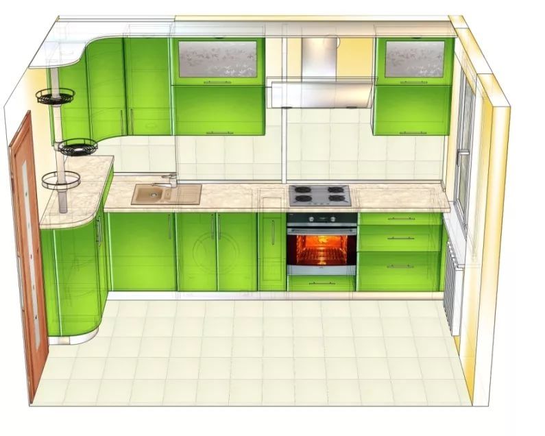 Преимущества: Кухня получается вместительной и удобной.
