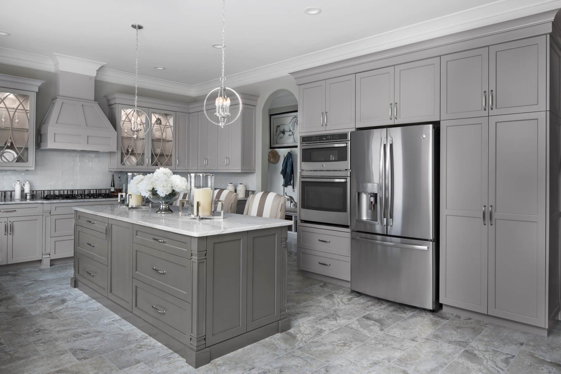 Серый цвет идеально подходит для создания интерьера кухни в классическом стиле.