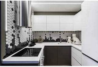 Подобрать фартук для черно белой кухни бывает очень непросто.