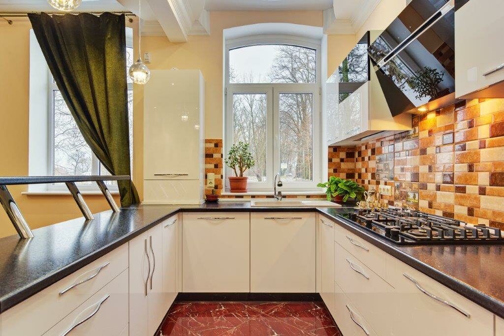 Кухня буквой П — это кухонный гарнитур с набором бытовой техники, расположенный по трем смежным стенам помещения.