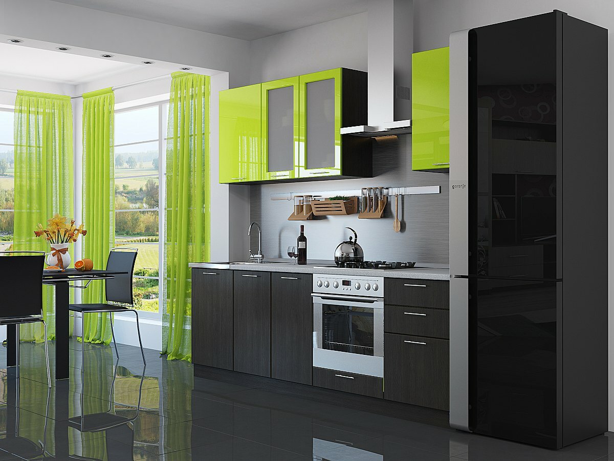 Светло-зеленые стены действительно могут оживить черно-белую кухню. Всплеск цвета поднимет настроение светлому и темному сочетанию