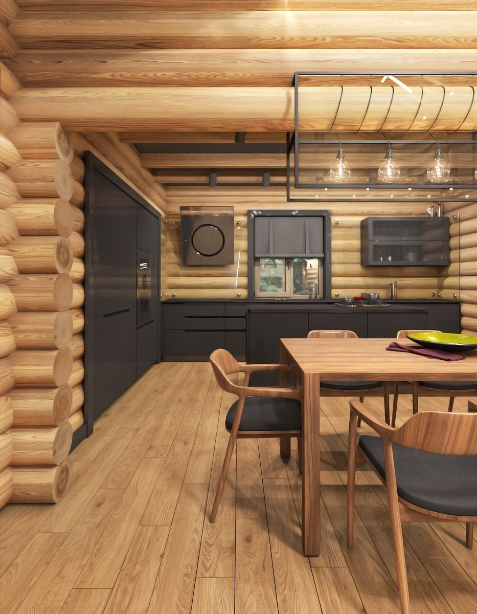 Дом из оцилиндрованного бревна интерьер кухня гостиная