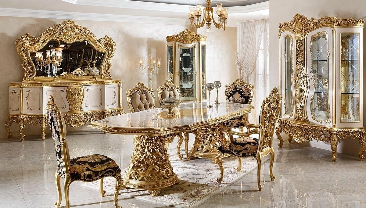 Барокко не обходится без больших шкафов, массивных столов и стульев — именно они становятся главными предметами роскоши в помещении. Обычно фронтально сторону гарнитура декорируют красивой ажурной резьбой, а по бокам отделывают стильными пилястрами.