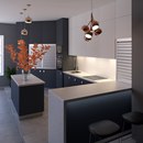 Просторная рабочая зона кухни гармонично сочетается с визуально свободной обеденной зоной. Прозрачный обеденный стол создает иллюзию пустого пространства.