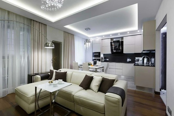 Фото просторных студий 23 кв. м позволяют рассмотреть множество вариантов зонирования и применить понравившиеся идеи в кухне-гостиной 19 кв.