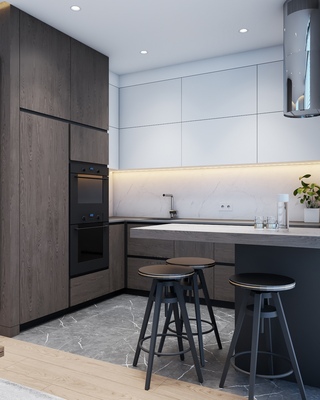 Одиноких домохозяйств становится все больше. Если в 1970-е годы в среднем домохозяйство состояло из 2,74 человека, то через 20 лет их было чуть меньше двух. А в 40% домохозяйств проживает только один человек. Это сопровождается тенденцией к созданию однокомнатных или микроквартир площадью от 19 до 25 квадратных метров. Здесь задача состоит в том, чтобы адаптировать дизайн и функциональность кухни к пространству и остальному интерьеру.