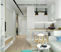 В целом приемы зонирования всегда остаются применимыми – как в помещении в 19 кв. метров, так и в 30 квадратов. Это и барная стойка, и различия в цветовой палитре рабочей зоны и гостиной, и арки, и легкие перегородки. Такие варианты практичны, понятны и функциональны. Но есть несколько идей, которые, возможно, придутся и вам по вкусу: