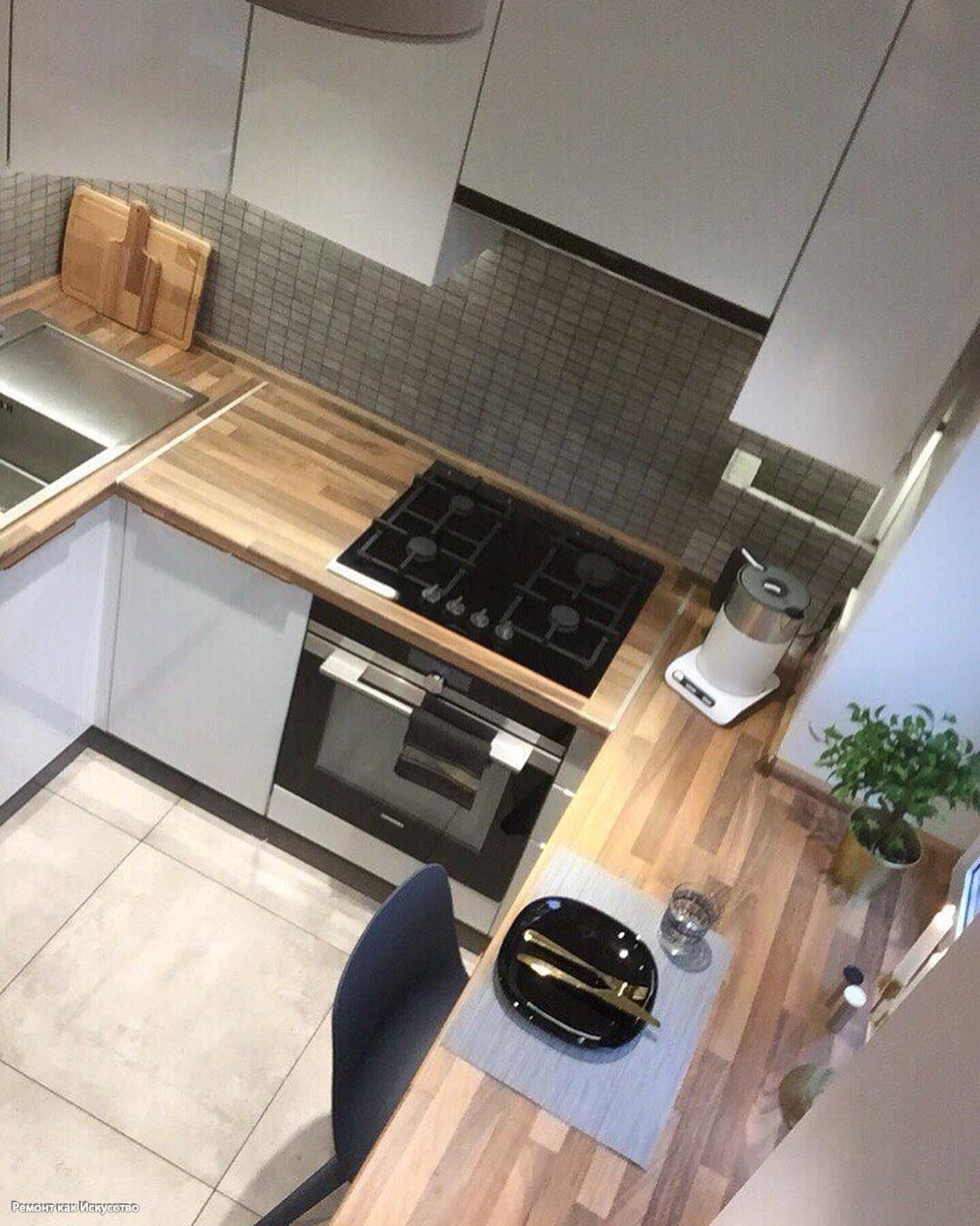 Угловая планировка добавит рабочие поверхности и повысит функциональность кухни