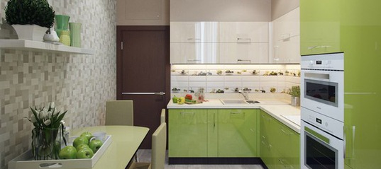 В комнате для готовки будут уместны яркие, жизнерадостные краски: салатовый, желтый, апельсиновый или все оттенки красного. Все они превосходно комбинируются с ахроматической палитрой: белым, серым, черным.