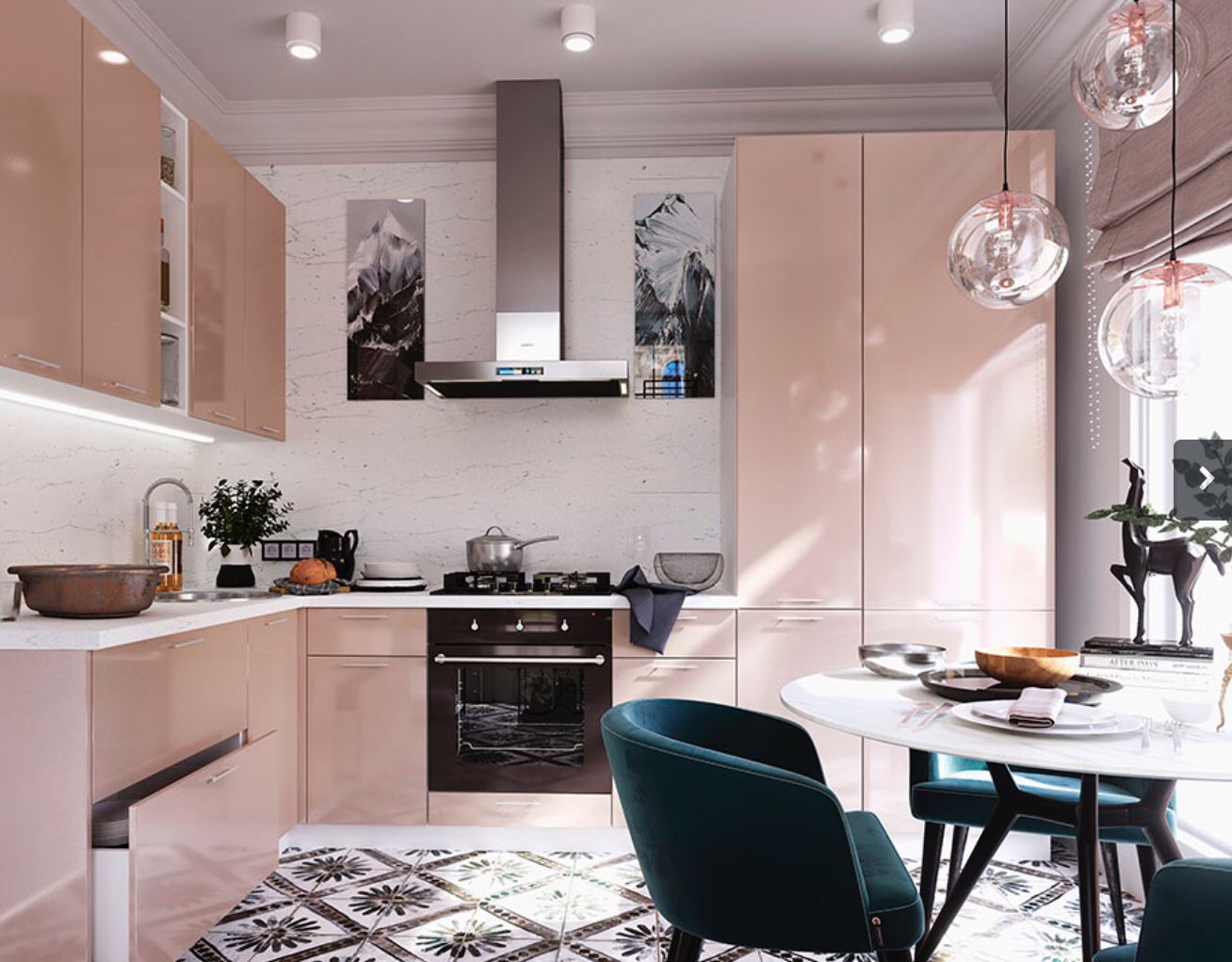 Один из главных трендов прошлого сезона, который особенно хорошо прижился в России. Преимущество глянца в том, что он даже самое небольшое и простое помещение автоматически делает более нарядным. Главное, четко усвоить одно правило: глянцевым в комнате может быть только что-то одно. Или фасады, или фартук, или потолок, или пол. Спасти такое сочетание может только интересное цветовое решение, но если вы не уверены в своем выборе, оставьте что-то одно. Лучше меньше, да стильно.