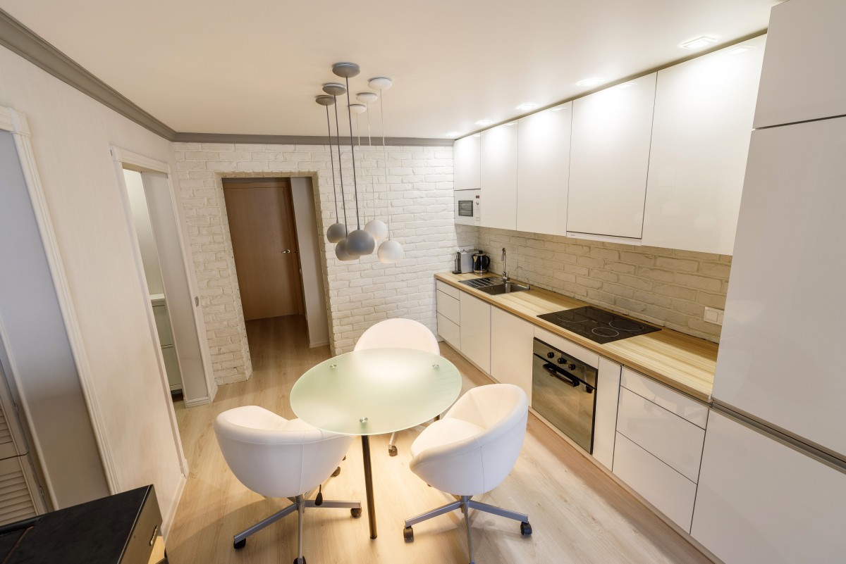 Зонирование позволяет разграничивать несколько сегментов с разным функциональным назначением, находящихся на одной территории. Рекомендуется оформлять кухню неброско, чтобы она не бросалась в глаза и не перенимала все внимание на себя.