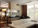 - В качестве перегородки можно использовать самые разные предметы интерьера. Например, это может быть диван, аквариум.