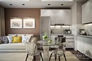 После решения этих задач необходимо очертить жилую зону и кухню. В пропорциональном соотношении разместятся эти две зоны, в зависимости от личных предпочтений собственника квартиры, а также семейных привычек. Например, семья состоит из двух человек, они редко едят дома, им будет достаточно и небольшой площади, где можно разместить небольшой стол для ужина. Другое дело, если речь идет о большой семье, которая раньше обедала и ужинала вместе, и не прочь собраться с друзьями и семьей.