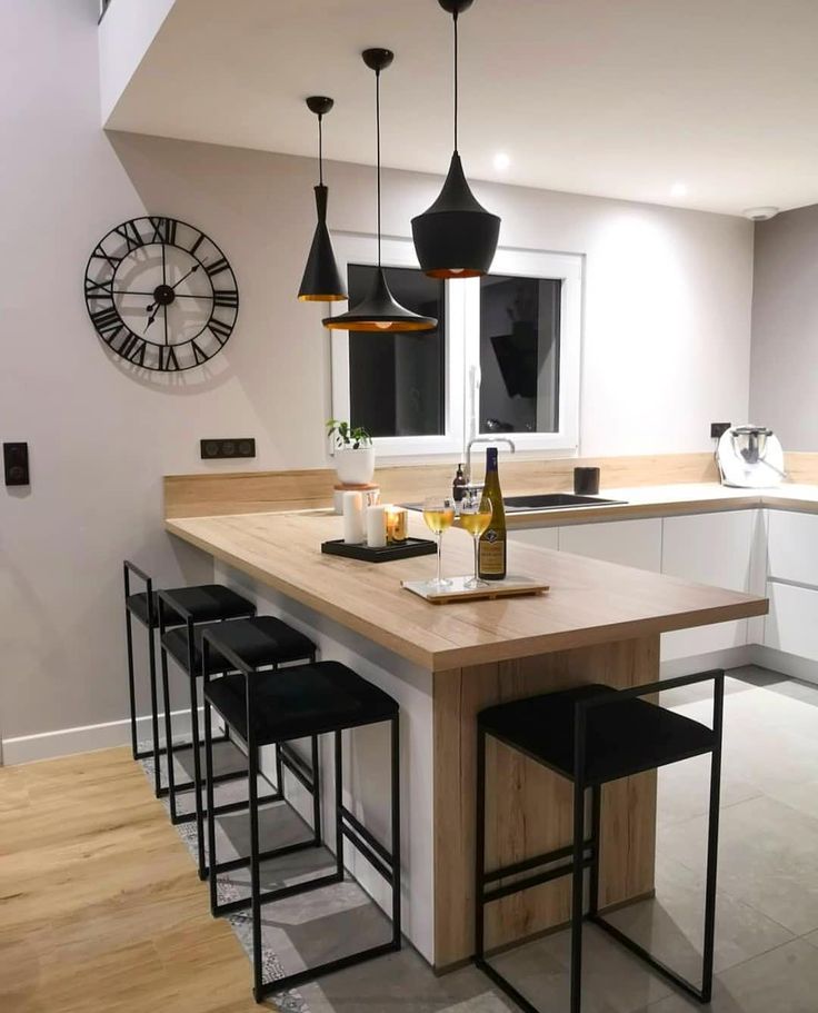 В качестве разделителя кухни и столовой часто используют барную стойку