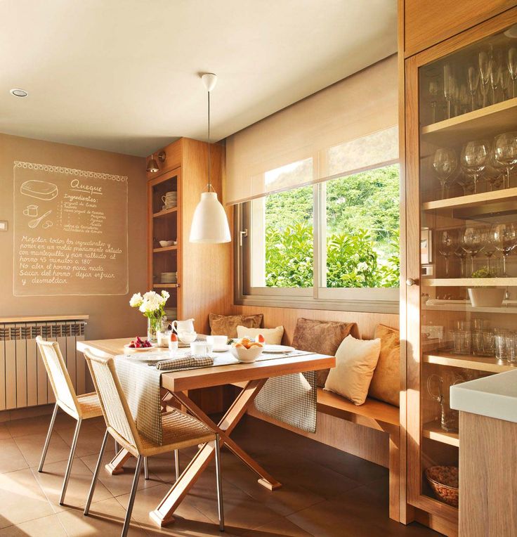 Размещение скамейки прямо у столешницы может действительно соединить все вместе. Эта белая кухня от Lindsey Brooke Design имеет почти плавный переход от скамейки к прилавку. Добавьте растение в горшке к столу для украшения, и все готово!