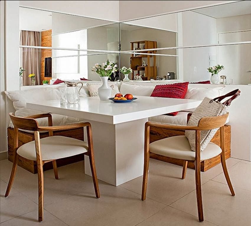 В современных квартирах гостиная отводится для отдыха и развлечений, а для столовой организуется место на кухне. Обеспечить наилучшее расположение места для обедов всей семьи помогут несколько дизайнерских приемов: