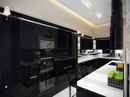 Кухонная мебель, отделанная черным глянцем, выглядит очень элегантно.