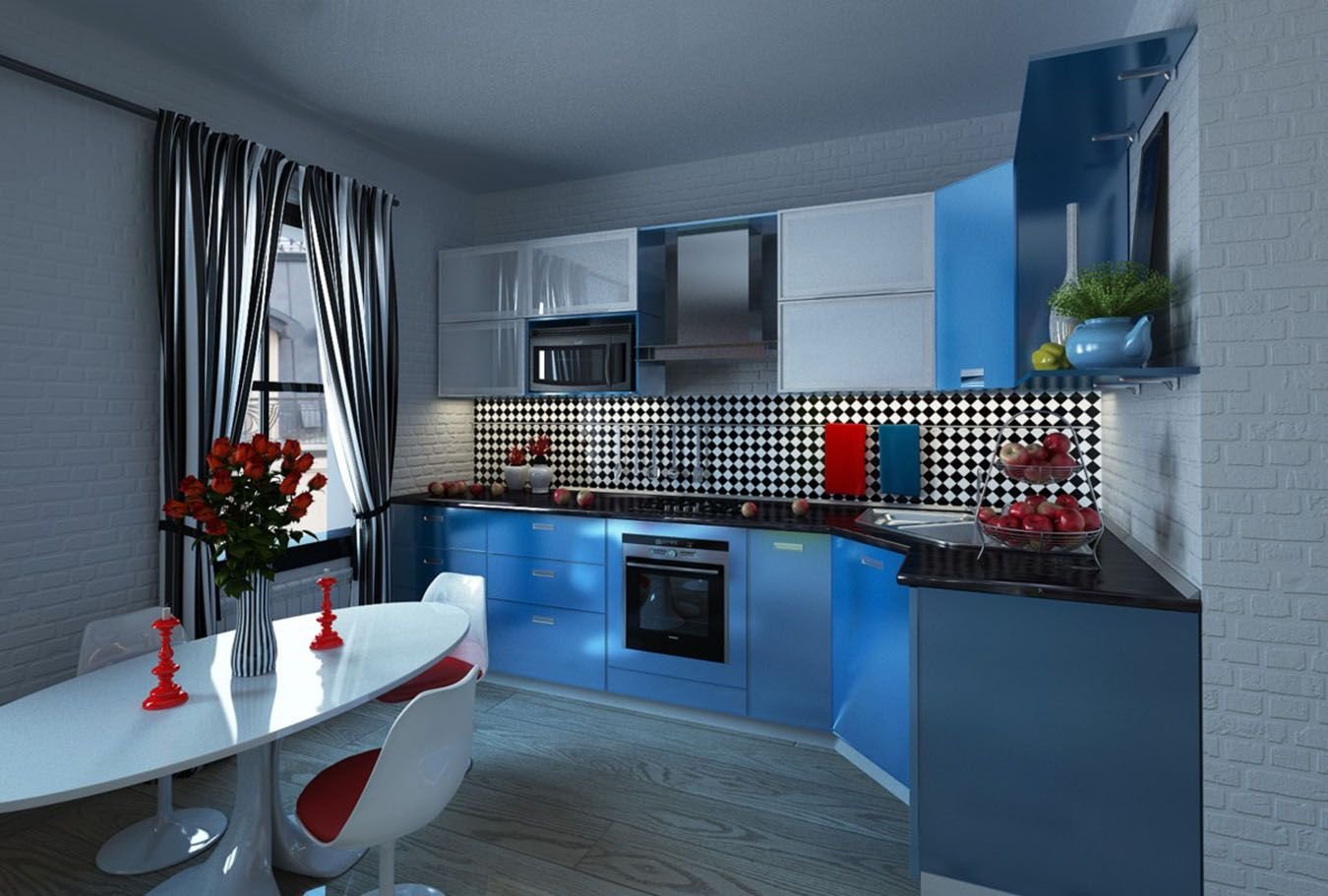 Характеристика кухонного помещения в синем цвете