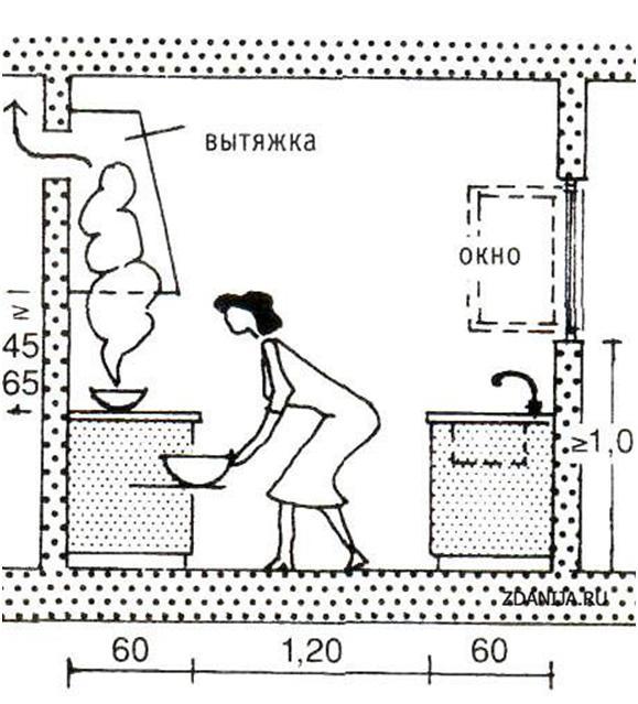 Важно, чтобы стоящий у плиты повар не ощущал ни малейшего дискомфорта и не цеплял висящую над головой вытяжку.