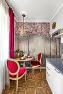 - +Еще одна фишка — обои с 3D (трехмерным) изображением. Такие модели лучше использовать для стены, на которой будет размещен основной акцент: например, в обеденной зоне.