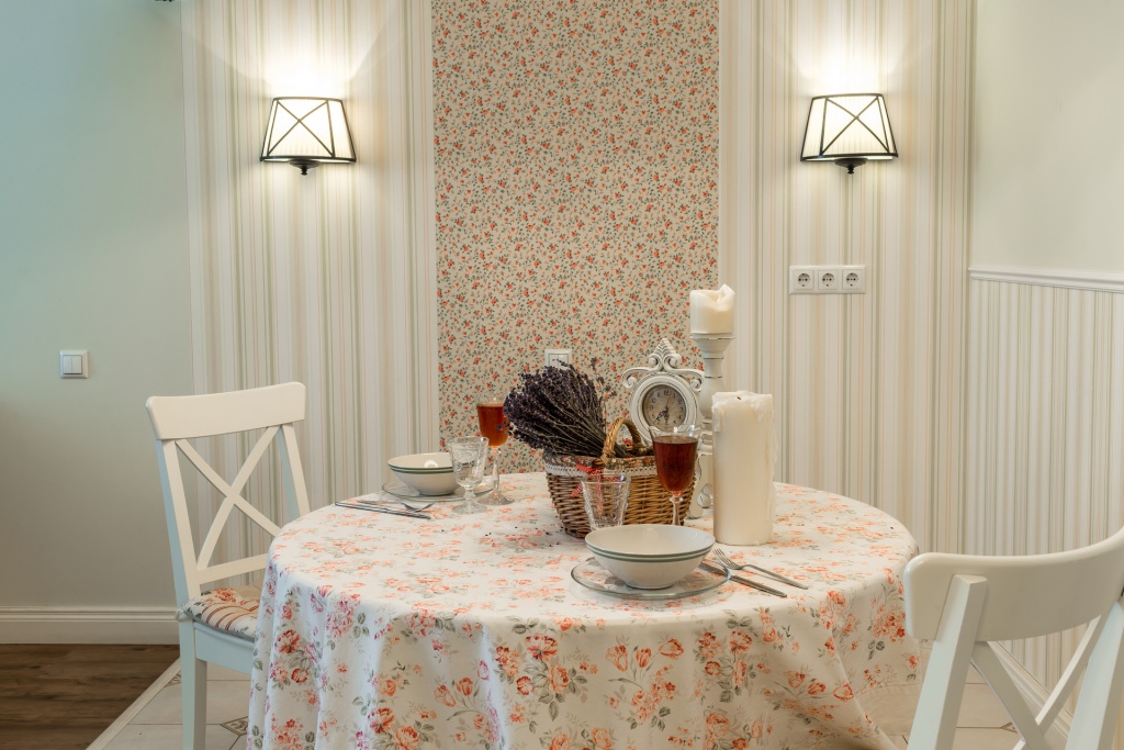 Если маленькую кухню оклеить обоями светлых тонов, то визуально она будет казаться больше. Рисунок на обоях для небольшой кухни должен быть мелким и неброским.