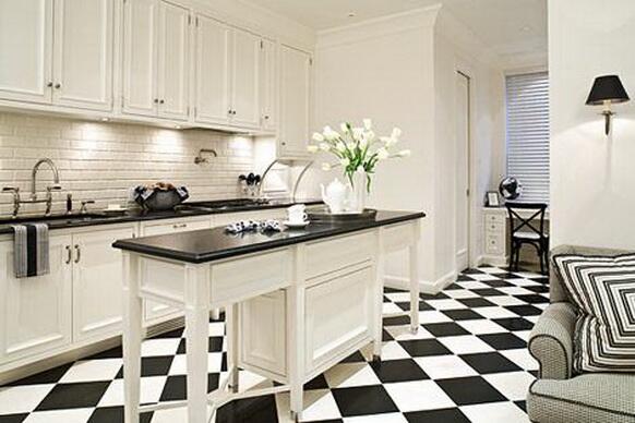 - Если кухня независимо от размеров сделана в ретро стиле, то уместно использование черно-белых оттенков такое сочетание отлично подходит и для стиля авангард или арт-деко.
