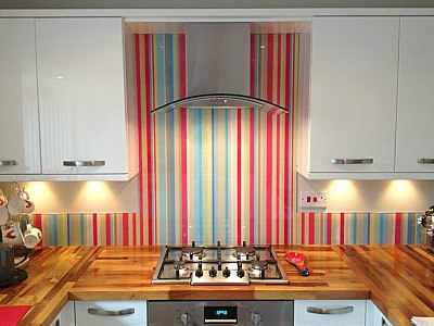 Взгляните на эту кухню со стеновой панелью Ikea Fastbo в разноцветную полоску. Так живо выглядит!