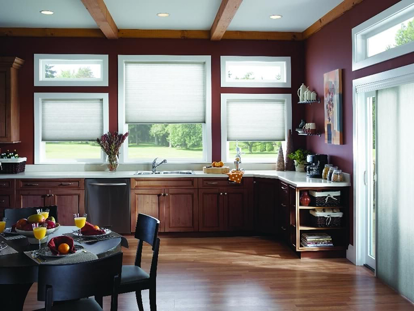 Интерьер кухни с большим окном