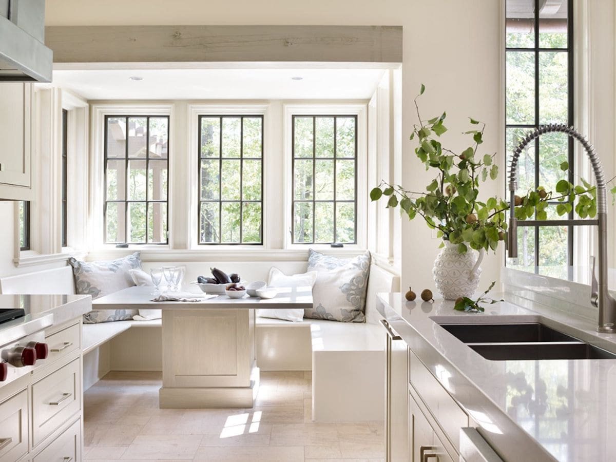 Мягкий уголок вдоль окнаИсточник remoo.ru Белый гарнитурИсточник i.pinimg.comВесомые недостатки раковины у окна на кухне