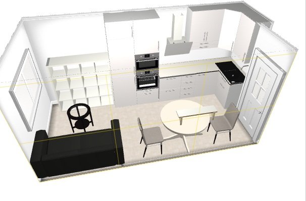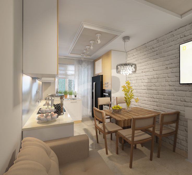 Для маленькой кухни-гостиной Лучше всего работают следующие макеты: