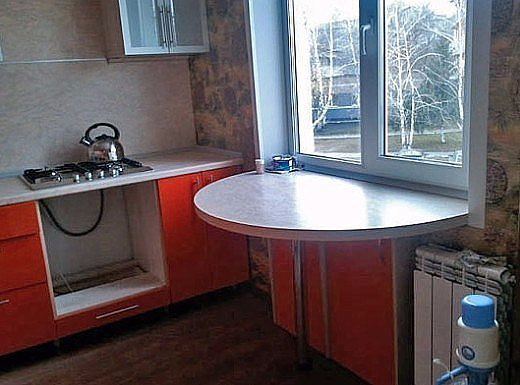 Подоконник-столешница дарит возможность рациональным образом использовать маленькую площадь кухни. Особенно это касается «хрущевок», где столешница-подоконник позволяет реально высвободить конкретную зону для других потребностей.