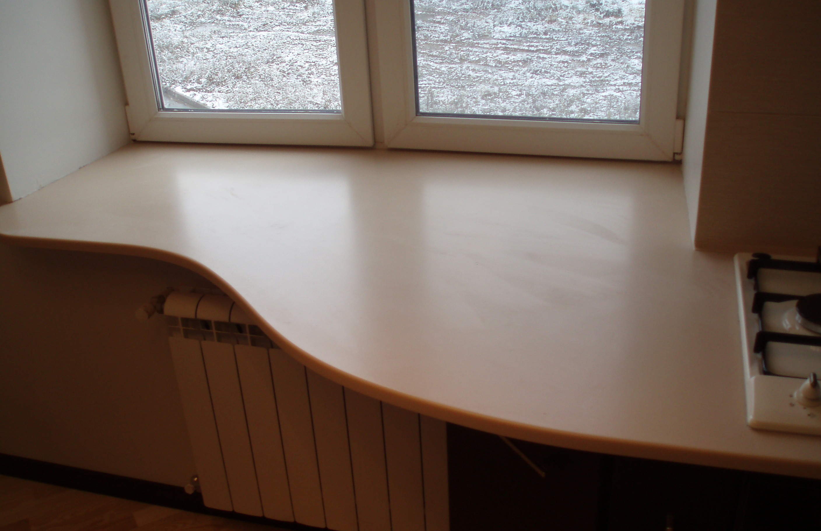 Смысл очень простой: Вместо подоконника, устанавливается столешница нужных размеров и конфигурации.