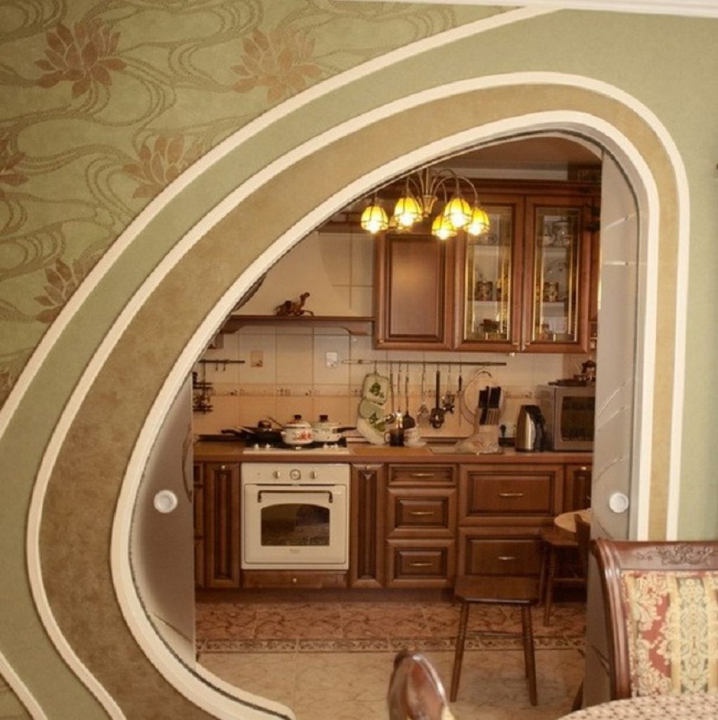 полуарка на кухню, красивые идеи и дизайн, как оформить дверной проем между гостиной и залом